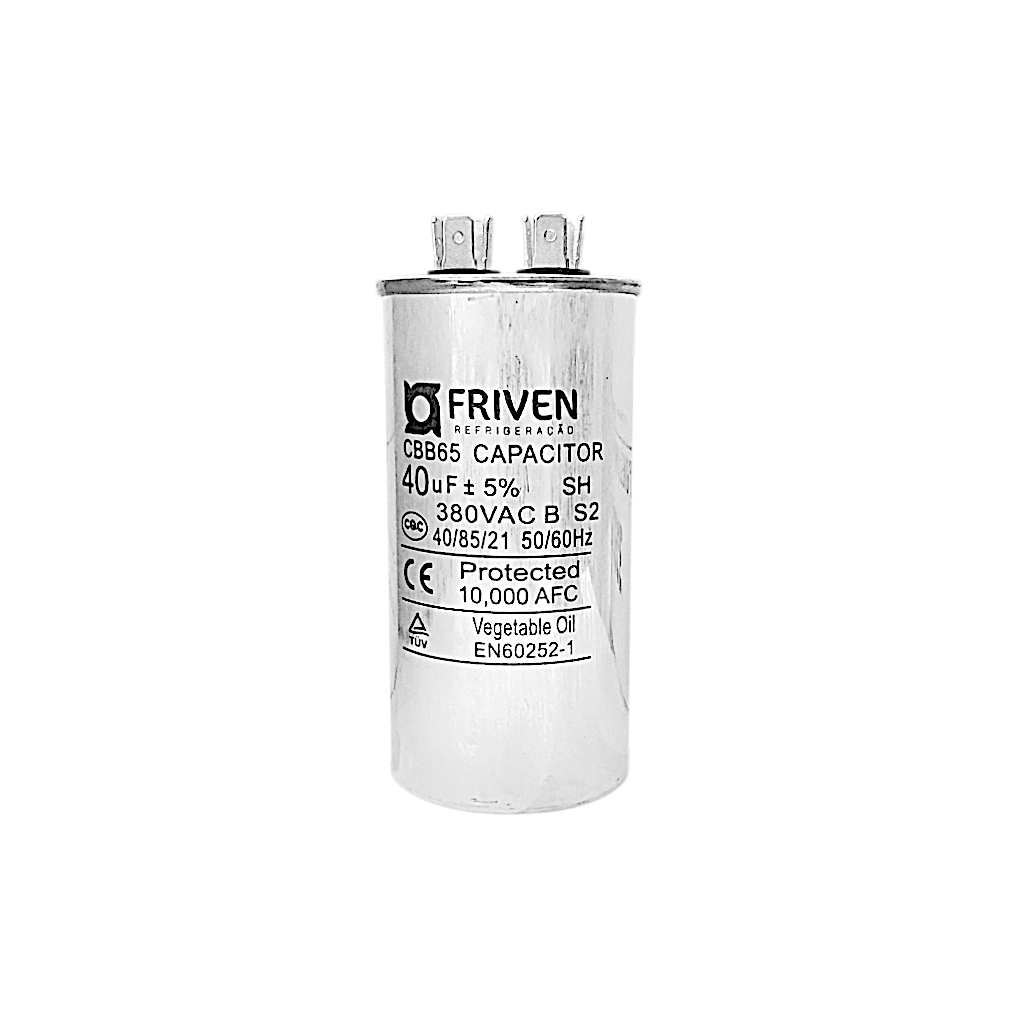CAPACITOR PERMANENTE DE ALUMÍNIO CBB65 40µF ±5% 380 V AC – FRIVEN